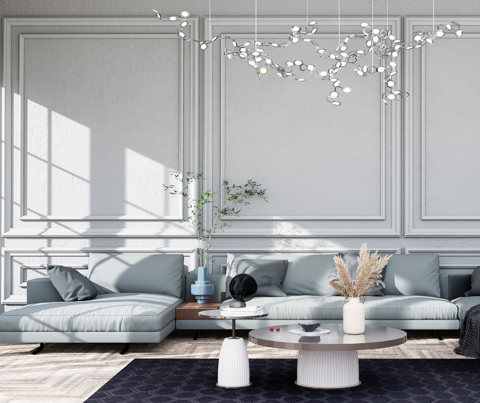 If you have a large living room, you can experiment with different shades of blue-gray to create a layered and dynamic look.