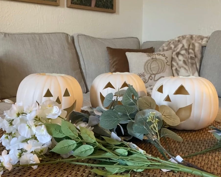 So instead, I grabbed some white carvable faux pumpkins from Target. They were more expensive but honestly, I love how it turned out!