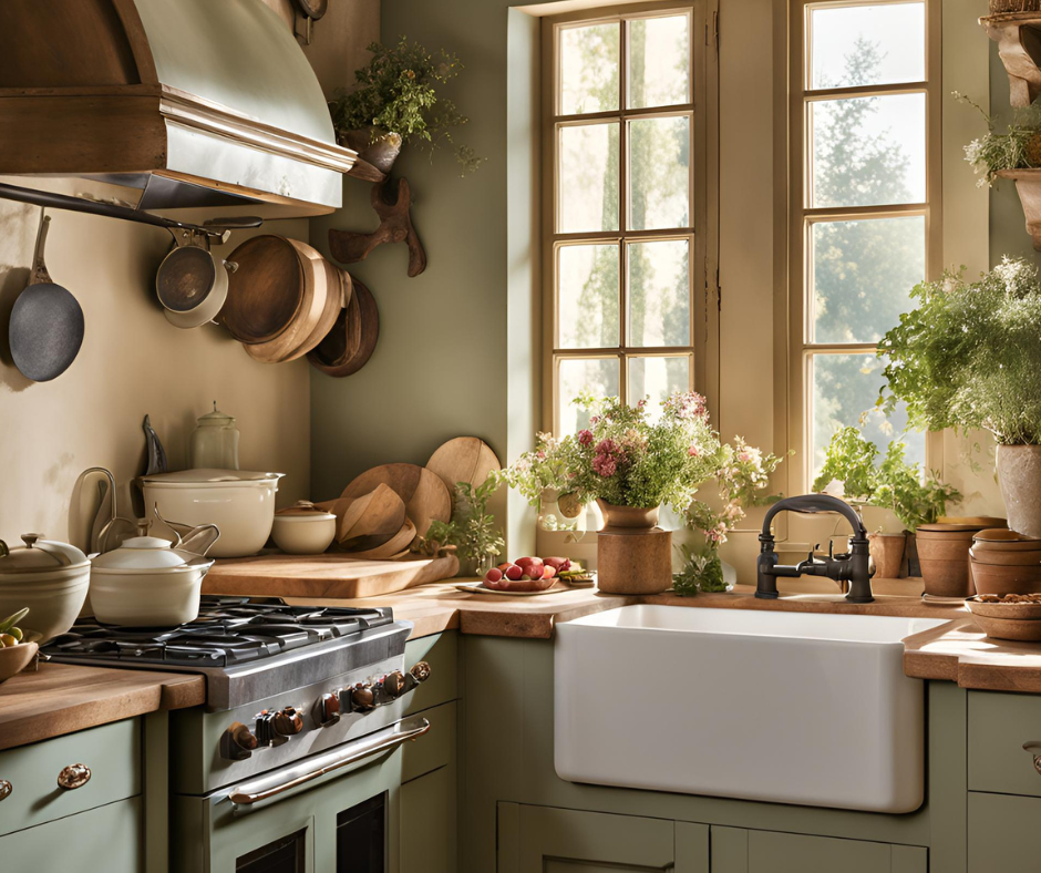 Rustic interiors benefit from materials like wood and stone, enhancing the French country kitchen feel.