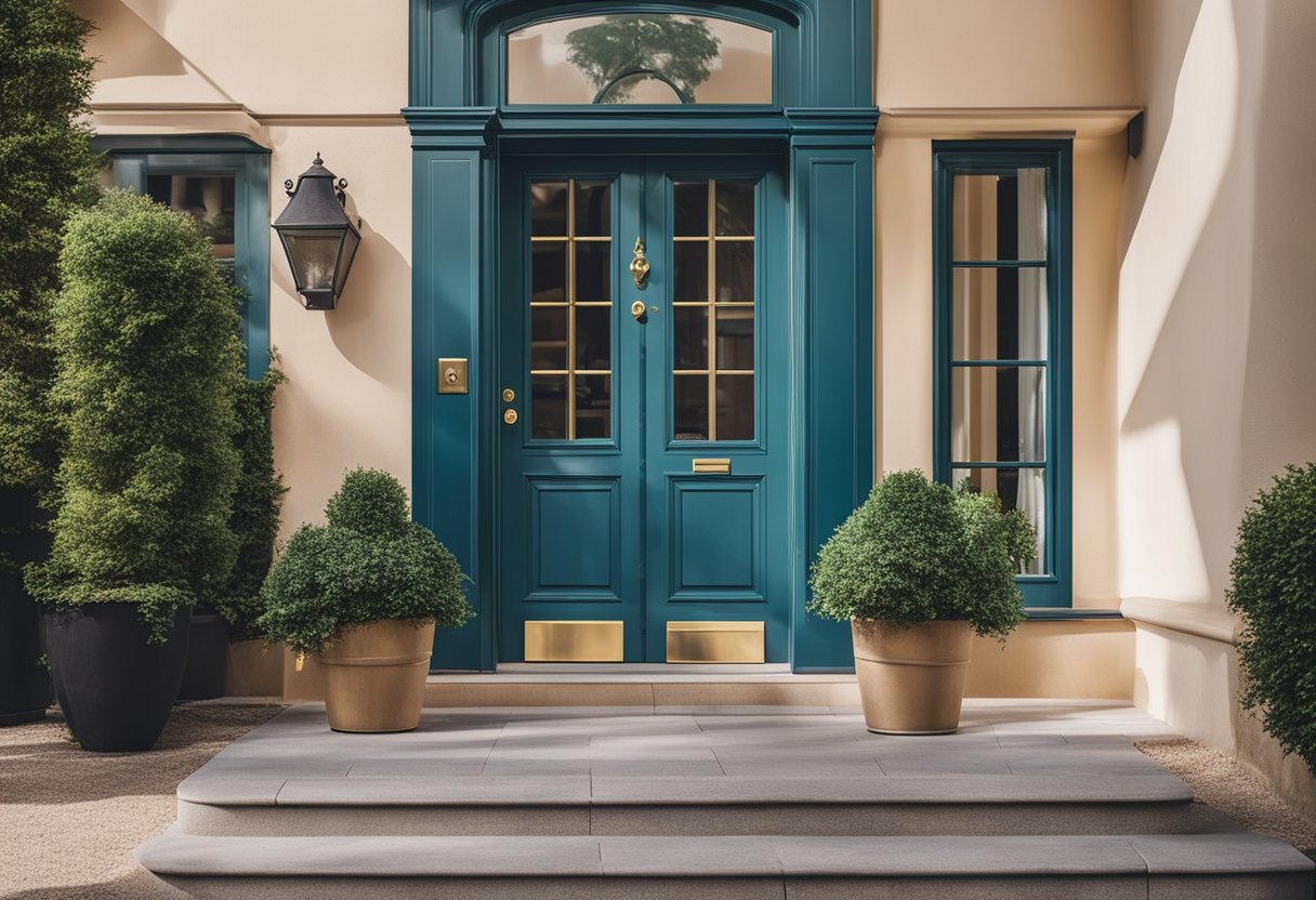 Stately and elegant paint colors, such as rich black or deep navy, can give your front door a sense of grandeur and authority.